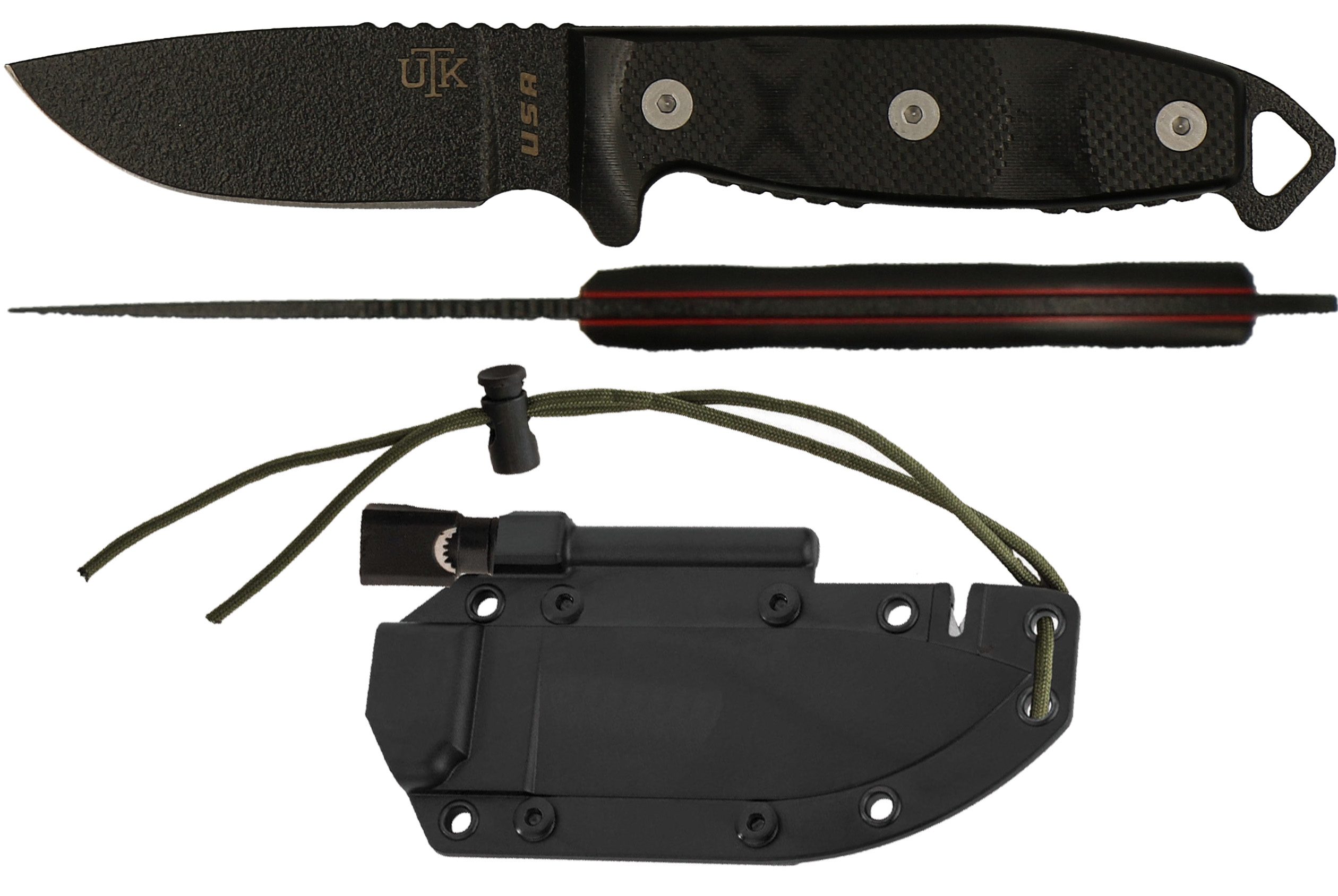 - ABS Sheath w/ Paracord Sharpener & Fire Starter